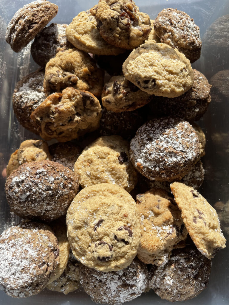 A box of 30 freshly baked Dark Chocolate Chip Cookies in five assorted flavors for only $40.00